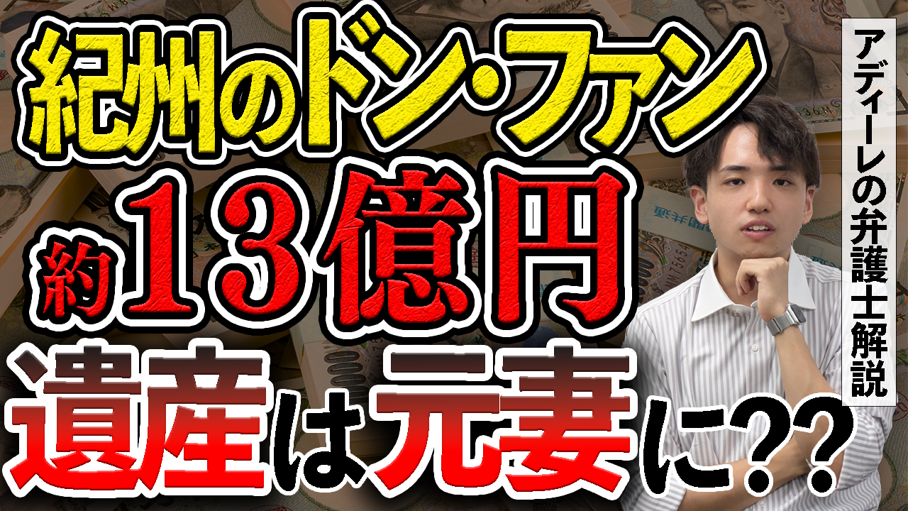 こちらをクリック!裁判で争われていた「紀州のドン・ファン」こと野崎幸助氏の「遺産の全額を田辺市に寄付する」という遺言書について、裁判所は有効との判決。しかし、遺言書が有効でも「元妻は遺産を受け取れる」との報道も。紀州のドン・ファンをめぐる遺産の行方は?アディーレ法律事務所の浦山弁護士が解説します。