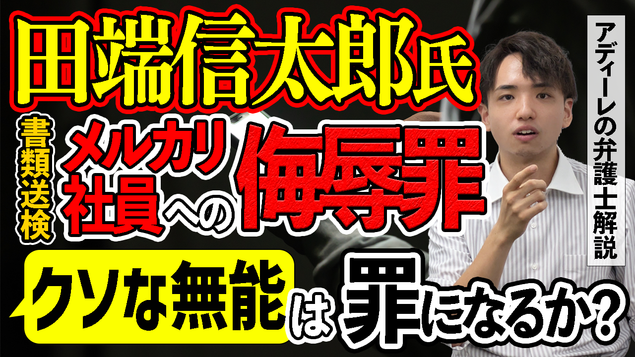 こちらをクリック!アクティビストの田端信太郎さんが、メルカリ社への「クソな無能」発言などをめぐり、侮辱罪の容疑で書類送検。 メルカリ株主でもある田端さんが“会社運営への意見”として発せられた今回の発言が、侮辱罪にあたるのか?また、侮辱罪に問われた場合の罪の重さは?アディーレ法律事務所の浦山弁護士が解説します。